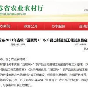 为持续推进,江苏省农业农村厅近日公布2021年省级“互联网+”农产品出村进城工程试点县...