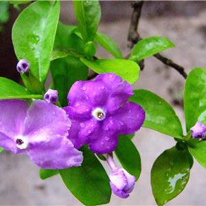 鸳鸯茉莉又名二色茉莉,茄科鸳鸯茉莉属,原产美洲热带。植株为常绿小灌木,高1米左右。
